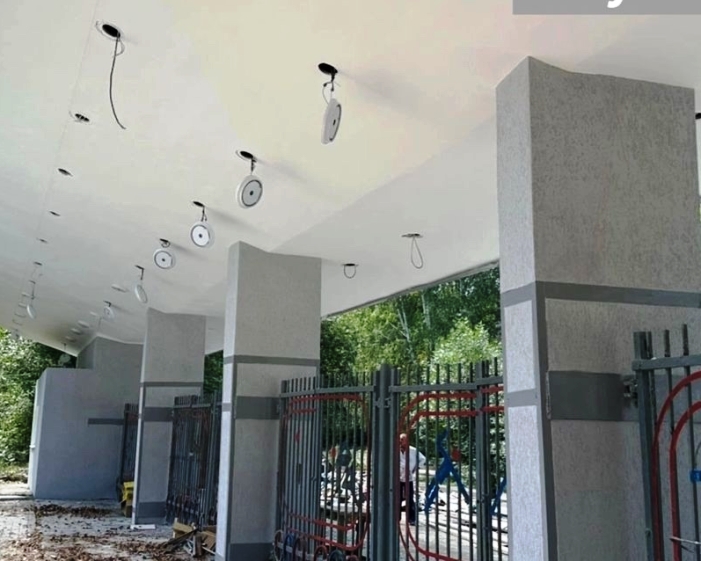 Заметно преобразился главный вход: завершены штукатурные работы, на финише установка светильников. В то же время продолжается ремонт кровли восточной трибуны стадиона.