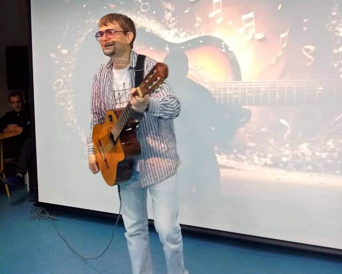 Постоянный участник вечеров гитарной музыки Валерий Иванович Попов до глубины души затронул зрителей авторскими песнями об участниках специальной воен