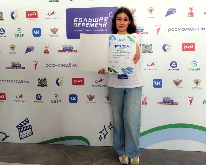 Ученица 11 «А» класса школы №24 Кристина Мириленко (классный руководитель Е. И. Радионова) приняла участие в полуфинале Всероссийского конкурса «Большая перемена», прошедшем в Ханты-Мансийске.