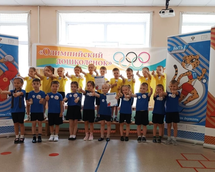 Воспитанники групп «Радуга» и «Непоседы» детского сада «Журавушка» приняли участие в акции «Урок ГТО» для детей 6 лет по 1 ступени комплекса ГТО.
