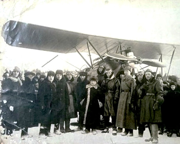 На обороте снимка надпись: Самолет "Асбестовский рабочий". У самолета стоит летный состав и гражданское