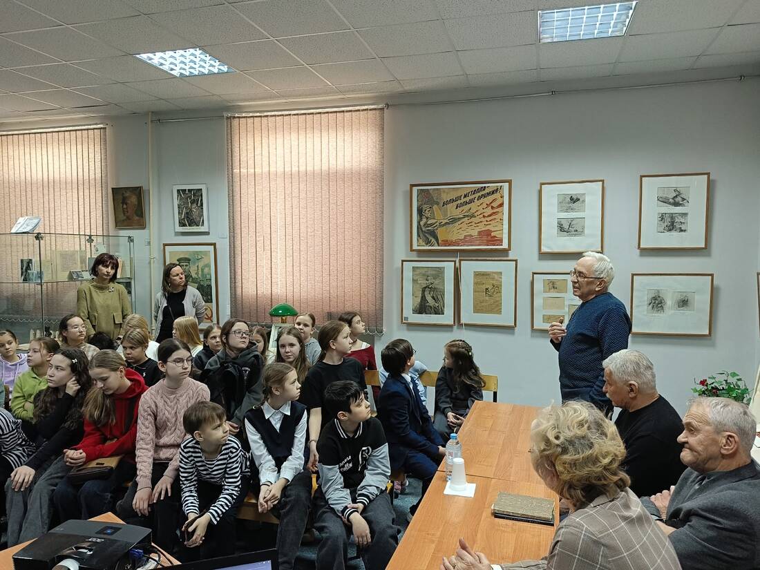 | Уникальное мероприятие в музее Н.М. Аввакумова, посвящённое творчеству художника Владимира Андреевича Абаскалова, посетили школьники. В зале вместе со своими преподавателями собрались учащиеся Асбестовской детской художественной школы и детского объединения «Калейдоскоп» ЦДТ. Это было незабываемое знакомство с историей родного края через искусство. Первым делом гостей встречала знаменитая картинная галерея «Город в лицах» — настоящая визитная карточка музея, созданная 25 лет назад городскими мастерами кисти и сохранившая память о Владимире Андреевиче Абаскалове. Ребята услышали тёплые рассказы от тех, кто знал художника лично — опытных художников и краеведов: П.А.Попова, Л.Н.Дмитриевой, Г.Б.Никитина, В.Н.Рубцова. Они вспомнили, каким вкладом в историю Асбеста был отмечен жизненный путь семьи Абаскаловых, чьи усилия способствовали развитию культурной среды города. Кроме того, детям поведали удивительные факты: именно Владимир Абаскалов стал автором памятных мемориальных досок, украшающих улицы, названные именами известных горожан — Королёва, Аввакумова, Ильина. И конечно же, школьники узнали, какую роль сыграл художник в преобразовании архитектурного облика обелиска на улице Победы и появлении названия улицы Ладыженского. В завершении встречи все гости получили уникальную возможность познакомиться ближе с работами мастеров прошлого и настоящего, насладиться атмосферой творчества и обменяться впечатлениями друг с другом. Встреча завершилась на позитивной ноте, открыв для каждого ребенка новые страницы истории своего любимого города. А.Меньшенина, педагог-организатор ЦДТ | |