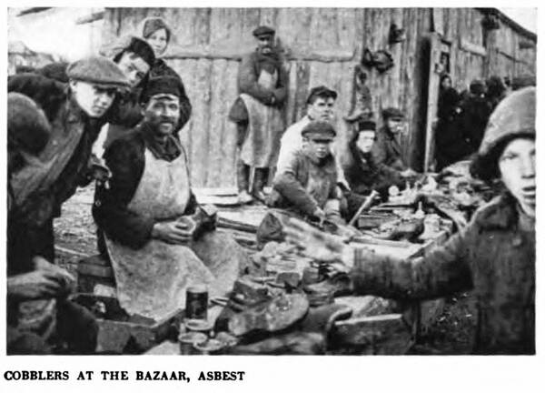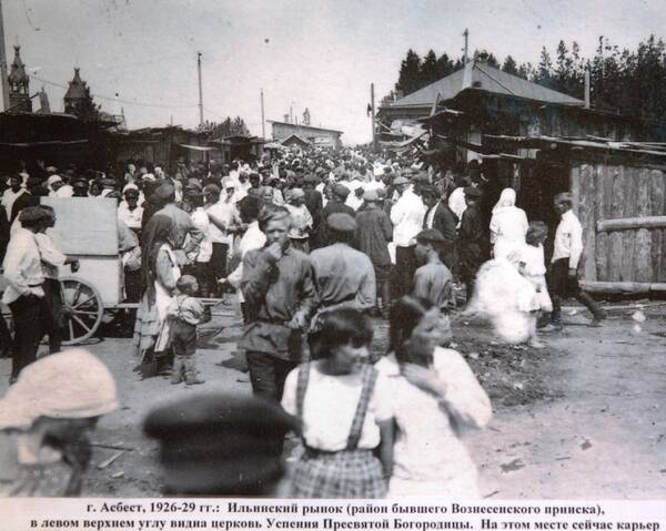 | Инженер У. Арнольд Ракайзер написал о нем в своей книге "Работа на Советы". В 1932 году в Советском Союзе изменились правила продажи излишков продуктов. В тот год власти снизили планы по заготовке хлеба и мяса, и это позволило крестьянам торговать - продавать излишки своих продуктов через колхозные ларьки и рынки. Согласно постановлению Совнаркома СССР и ЦК ВКП(б) от 6 мая 1932 года, колхозы и колхозники могли продавать хлеб на базарах и в колхозных лавках после выполнения норм установленных хлебозаготовок. Введение колхозной торговли было призвано увеличить товарооборот между городом и деревнёй, а также снабдить городских жителей сельскохозяйственными продуктами. Несмотря на время, политику и изменения правил торговли на колхозных рынках, на базаре Асбестовых приисков всегда шла бойкая торговля. Американский инженер У. Арнольд Ракайзер, в своей книге "Работа на Советы", опубликовал несколько снимков колхозного рынка на Асбестовых рудниках. Один из них он подписал так: "Свободный торговец продаёт хлеб на открытом базаре". А вот как описывает Ракайзер свои прогулки с супругой на Ильинский рынок: "...После ужина мы с женой обычно прогуливались по посёлку, фотографируя всё подряд. Наш аппарат всегда вызывал величайшее любопытство и восхищение у множества детей и взрослых, следовавших за нами: - Американский аппарат? Да? - Фотоаппарат? Замечательно! - Кинокамера? Прекрассно! И любопытные женщины тараторили о бриджах и шнурованных ботинках моей жены. А когда она надевала своё единственное платье, которое взяла с собой на рудники, и бобровую шубу, пройти мимо было невозможно. И женщины, и мужчины подходили к ней, чтобы хотя бы потрогать ткань. Дети буквально преследовали нас. От них можно было отвязаться только двумя словами: «парасьёоник» и «ибисьяано», первое означает «свинья», второе — «обезьяна». Услышав их, они, смеясь, разбегались кто куда, и мы могли спокойно продолжать свой путь. Прогуливаясь по базару, мы видели, как крестьяне продают свой скот и птицу, яйца и масло, огурцы и хлеб, который всегда продавался на развес. Мы наблюдали за сапожниками, работающими на своих верстаках под открытым небом. А потом заходили в кооперативный магазин, чтобы купить безделушки или сигареты. В то время магазины ломились от товаров. Там было все, что нужно для жизни. Красная икра по рублю пятьдесят за кило (2,2 фунта), чёрная икра — по три рубля; жареная утка — по полтора рубля, какао; кофе (бобы, содержащие кофеин, называют мокко, их всегда смешивают с цикорием, который покупают отдельно в виде порошка); вина; конфеты (дорогие, по паре рублей за четверть фунта, даже в те времена). Там были пальто на козьем меху и на флисовой подкладке по сто или сто двадцать рублей за штуку; сапоги по тридцать-сорок рублей, но из хорошей, плотной, хорошо сшитой кожи; галоши; шапки из дешевого меха, а дорогие шкуры шли на экспорт; и так далее. Сигареты по 24 копейки за 25 штук — их называли «папиросы» из-за бумажных мундштуков — можно было купить в неограниченном количестве. Более качественные марки, которые тогда продавались по 65 и 75 копеек за пачку из 25 штук, а также лучшие вина привозил для нас наш переводчик из Свердловска..." Источник | |