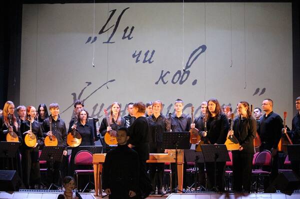 | И получили восторженные отзывы. "В Центре культуры и досуга Камышлова развернулось театрально-музыкальное событие, получившее громкое и интригующее название "Чичиков. Жизнеописание". Объединив свои усилия, студенты отделения народных инструментов и театрального отделения Асбестовского колледжа искусств создали произведение, где каждое слово оживало под аккомпанемент чарующих мелодий, а каждая нота насыщалась смыслом литературного первоисточника. Сердцем и душой музыкальной части концерта стал оркестр народных инструментов под чутким руководством дирижера Татьяны Викуловой. Этот коллектив, известный своим мастерством и преданностью традициям, представил фрагменты знаменитой "Гоголь-сюиты" Альфреда Шнитке. Чарующие звуки народных инструментов сплелись в единую канву, отражая многогранность характеров и событий, описанных в бессмертном творении Николая Васильевича Гоголя. Музыканты с удивительной точностью передавали настроение каждого эпизода, то нагнетая драматизм, то увлекая игривой легкостью, то вызывая светлую грусть. В этом музыкальном океане голосом Гоголя зазвучали студенты театрального отделения колледжа: Аксиния Постник, Арина Есипенко, Сергей Сергеев, Елена Самохвалова, Мария Гордеева и Анастасия Коваленко, рассказав биографию главного героя бессмертного произведения "Мертвые души". Слова Гоголя, произнесенные с трепетом и пониманием, обретали новую жизнь, рисуя перед слушателями яркие эпизоды жизни известного персонажа - отставного чиновника Павла Ивановича Чичикова. Концерт "Чичиков. Жизнеописание" можно назвать блестящим примером того, как искусство может преображать классику, делая ее доступной и понятной современному зрителю. Это диалог эпох, где музыка и слово зазвучали с новой силой благодаря таланту и энтузиазму молодого поколения". Источник | |