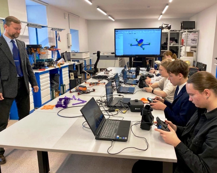 | Ученики Лицея № 9 приняли участие в открытии образовательного кластера «Кабинет по учебному предмету „Труд (Технология)“» в Уральском государственном педагогическом университете. Мероприятие прошло в рамках проекта «Труд. Профориентация. Свердловская область». В своём выступлении проректор по воспитательной работе и молодежной политике УрГПУ Анастасия Тенихина отметила, что УрГПУ и ГК «Просвещение» был разработан и издан учебник «Профориентация в Свердловской области. Региональный модуль. 8–9 классы», автором которого является Александр Усольцев, заведующий кафедрой физики, технологии и методики обучения физике и технологии. В сентябре 2024 года обучение по этому учебнику идет в Лицее № 9 г. Асбеста в пилотном режиме. Право торжественно перерезать ленточку и открыть новый кластер было предоставлено проректору по образовательной и методической работе Евгении Казаевой и ученику 9 Б класса Лицея № 9 Еремею Моралеву, победителю и призеру Всероссийской олимпиады школьников, активному участнику «Движения Первых». Ребята познакомились с современным учебным пространством, где теоретические знания находят практическое применение. Онги разрабатывали дизайн подставок на телефон с логотипом университета, учились управлять дронами и роботизированными собаками. Источник | |