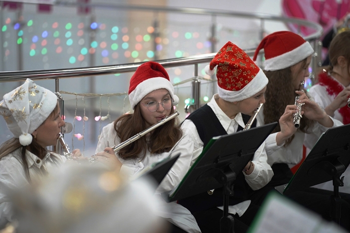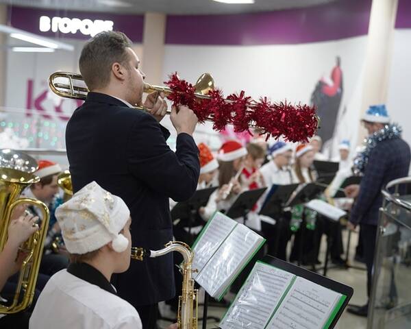 | Накануне Нового года музыкальный подарок учеников Асбестовской школы искусств прозвучал в ТЦ «Небо». 25 и 27 декабря асбестовцы могли услышать любимые новогодние мелодии, просто придя за покупками. Детский духовой оркестр (руководитель Шамшеев Василий Владимирович) и Детский эстрадный оркестр (руководитель Исупов Вадим Геннадьевич) создали магию праздника. В одну минуту весь торговый центр будто переносился в уютный летний парк под звуки изящного «Вальса №2» Шостаковича и лиричного «Концертного вальса» Дунаевского. А уже в следующую — заряжался невероятной энергетикой джаза и рок-н-ролла. Знаменитый «C-jam blues» Дюка Эллингтона, зажигательные хиты «I Feel Good» и «Rock Around the Clock» заставляли сердце биться в такт. Посетители торгового центра радовались, узнавая знакомые мелодии из любимых фильмов и мультфильмов, и аплодировали смелым аранжировкам, где «Щелкунчик» Чайковского встречался со свингом, а народная «Калинка» — с джазовой дерзостью. Были и музыкальные загадки, и моменты, когда зрители дружно подпевали «Если с другом вышел в путь», и трогательные финальные аккорды «Happy New Year». Асбестовская детская школа искусств | |