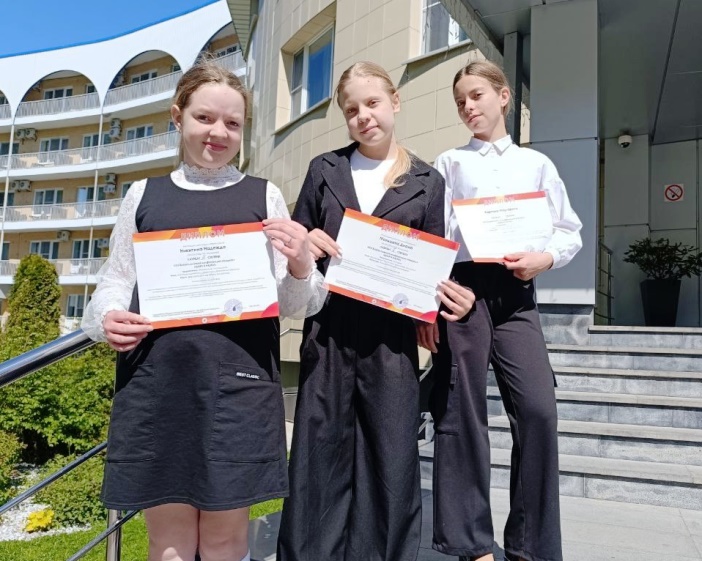 | Семиклассники школы № 3 под руководством учителя русского языка и литературы Ольги Коргун приняли участие в XXV Всероссийской конференции учащихся «Шаги в науку» (г. Серпухов Московской области). Конференция проводилась Общероссийской Малой академией наук «Интеллект будущего». Участников ждала интересная программа: мастер-классы, интеллектуальные игры, гала-концерт «Величие Победы» и защита исследовательских проектов. По результатам защиты проектов дипломом лауреата 1 степени награждена Карпова Маргарита (проект «Изумрудное сердце России», педагог-наставник Клешнина В.В., учитель математики и информатики»); дипломом лауреата 2 степени награждена Мальцева Диана (проект «Книга памяти «Через года, через века – помните!», педагог-наставник Клешнина В.В., учитель математики и информатики»); дипломом Лауреата 3 степени награждена Никитина Надежда (проект «Как помочь ребенку справиться с травлей в интернете», педагог-наставник Бродовикова И.В., учитель истории). Поехать на конференцию школьникам помог благотворительный фонд «Достойным – лучшее!» Источник | |