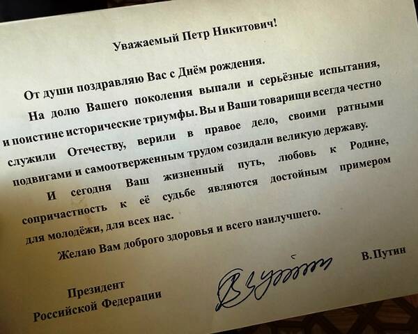 | Поздравление от администрации Петру Никитовичу Герасину вручили глава муниципалитета Мария Рубцова и председатель Совета ветеранов Надежда Коновалов Мария Рубцова рассказала, что судьба Петра Никитовича - это пример невероятной силы духа. Его детство пришлось на годы Великой Отечественной войны, и часть этих тяжёлых лет он провёл в концлагере. Но, несмотря на пережитые испытания, сегодня он остаётся человеком с добрым сердцем и светлым взглядом на жизнь. Пётр Никитович ведёт активный для своих лет образ жизни, много улыбается и даже находит время для творчества - иногда рисует. Особенно приятно, что с Днём рождения Петра Никитовича поздравил Президент Российской Федерации Владимир Путин. Источник | |