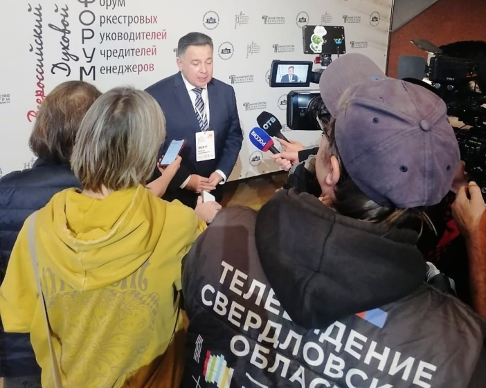 | Руководители Асбестовского оркестра приглашены к участие во II Всероссийском духовом форуме. Более ста музыкантов со всей России приехали 22-23 октября в Екатеринбург. Учредителем форума выступило Министерство культуры Свердловской области. Основная тема первого дня "Новый репертуар для духовых оркестров - дух современности или веление времени". Пленарное заседание началось с Приветственного слова Министра культуры Свердловской области Учайкиной Светланы Николаевны . Муниципальный духовой оркестр им.М.Борисова представляли художественный руководитель Василий Шамшеев, главный дирижёр Михаил Трошин и Василий Ватагин. Источник | |