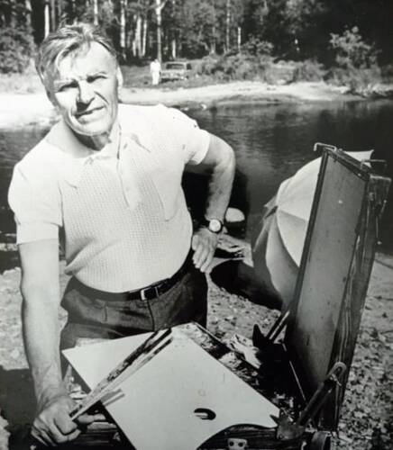 | И было это чуть больше, чем 70 лет назад. Виктор НИколаевич рассказывал, что первый концерт самодеятельные артисты давали в еще незаконченном (не принятом комиссией) Дворце 7 ноября 1955 года. На фото - Виктор Николаевич Сабуров, Почетный гражданин города Асбеста, участник Великой Отечественной войны, художник, первый директор Дворца культуры имени М. Горького. Автор снимка фотокорреспондент редакции газеты «Уральский рабочий», Владислав Михайлович Ветлугин. Фотография подписана: "Художник Сабуров В.Н. Берег реки Рефт, за работой над очередным этюдом. 1980 год." Виктор Николаевич Сабуров родился в селе Ертарское Тугулымского района 16 сентября 1916 года. В 1931 г. окончил семилетку, а в 1933 г. - школу ФЗО в Свердловске. Как отличник учебы, был направлен для продолжения образования в техникум «Спецсталь». После участия в выставке самодеятельных художников Урала в 1935 г. определился его жизненный путь. Ему рекомендовали поступать в Свердловское художественное училище. Годы учебы в художественном училище прервали служба в армии и Великая Отечественная война. После демобилизации вернулся к любимому делу. В 1950 г. переезжает в Асбест. Начав с рядового работника городской художественной мастерской, он вскоре заявил себя хорошим организатором, человеком, способным быть лидером, руководителем коллектива. В 1953 году его переводят заведующим клубом, а затем куратором строительства Дворца культуры. В 1955 г. Виктор Николаевич Сабуров становится директором открывшегося Дворца культуры имени М. Горького. При нем возникли новые коллективы: хор превратился в ансамбль песни и танца, вырос численно и качественно драматический коллектив, образовались сектор детской художественной самодеятельности, группа театральных миниатюр, струнный оркестр, хор ветеранов, студия изобразительного искусства. Вскоре самодеятельность Дворца культуры под его управлением добилась успеха не только в пределах города, но и получила всесоюзное признание. На базе Дворца культуры было организовано Совещание работников культуры Урала, Сибири и Средней Азии. Ансамбль песни и танца – лауреат и призер многих смотров самодеятельности, - был приглашен для выступления во Дворце съездов в честь 50-летия годовщины Октября. По состоянию здоровья уходит с должности директора Дворца культуры, но остается трудиться руководителем художественной студии, в которой занимаются десятки детей и взрослых. В 1951 г. при его активном участии готовилась и была проведена первая городская выставка работ самодеятельных художников, в последующие годы такие выставки стали традиционными. Под его началом развивался талант многих асбестовских художников (О. Мамаев, В. Голомолзин, Л. Дмитриева, Г. Власов). На протяжении многих лет возглавлял общественный городской художественный совет. Он сам – участник художественных выставок, на его счету не одна персональная выставка. В 2001 г. состоялась последняя персональная выставка. В живописи всегда был приверженцем традиционного реалистического направления. Закончил трудовую деятельность в должности художника-оформителя в АПОГАТе. В 2000 г. В.Н.Сабурову присвоено звание «Почетный гражданин города Асбеста». Первый снимок находится на хранении в Свердловском областном краеведческом музее имени О. Е. Клера. Второй снимок из фонда Асбестовского исторического муз