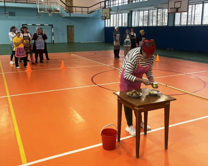 | Необычным получилось утро накануне 8 марта для работников физкультурно-спортивного центра и специалистов отдела физической культуры, спорта и молодежной политики администрации Асбеста. Конкурс "Хозяюшка" в честь Международного женского Дня 8 Марта был организован мужчинами для женской половины учреждения. Чистка картошки (нашли, чем удивить), название кухонных принадлежностей (тем более), песни с женскими именами, швейная мастерская, спортивный флешмоб и перетягивание каната - вот какие испытания приготовили для дам. И, конечно, они справились! Каждая участница не просто показала себя как хозяйка, а как настоящая творческая личность, рисуя с закрытыми глазами портрет мужчины. Источник | |