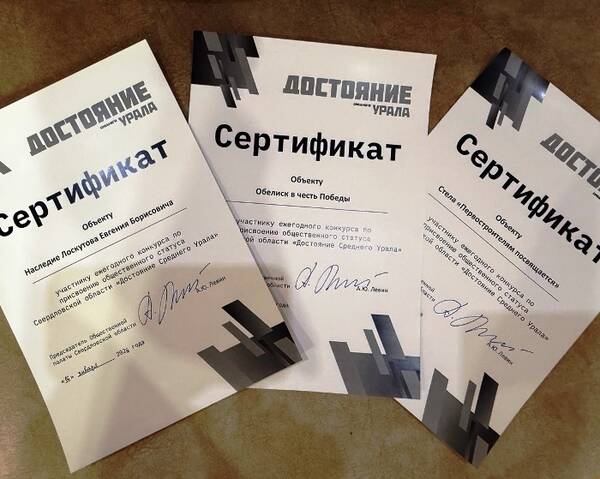 | Объектам присвоен общественный статус «Достояние Среднего Урала» - по итогам народного голосования и строгой оценки экспертов. Что это за символы? Обелиск Победы - центральный мемориал посёлка. Он хранит память о подвиге предков, служит местом, где встречаются поколения, и где проходят все ключевые памятные мероприятия Наследие художника Евгения Лоскутова - человека, чьи труды и инициативы стали фундаментом для развития Рефтинского городского округа. Стела Первостроителям - дань уважения и благодарности. Она навсегда сохраняет в истории труд и самоотверженность тех, кто своими руками построил первые дома и улицы нашего посёлка. Полученные сертификаты - подтверждение, что местная история стала неотъемлемой частью большой истории Урала. Источник | |
