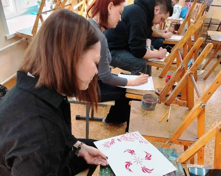 | Пока в школьных коридорах было непривычно тихо, в мастерских кипела творческая жизнь. Весенние каникулы для преподавателей — время профессионального «апгрейда» и обмена вдохновением. В школе провели серию мастер-классов, где педагоги сменили привычные роли и погрузились в чистое созидание. Золото на черном: магия Хохломы Под чутким руководством Ольги Владиславовны Пинегиной мастера обратились к истокам. Темой встречи стала традиционная народная роспись. На мастер-классе педагоги филигранно вписывали классический хохломской орнамент в круг. Тончайшие травинки, наполненные смыслом и жизнью народа — каждый автор привнес в канонический узор свой почерк, еще раз доказав, что народное искусство вечно и бесконечно вариативно. Объем и форма: весенний барельеф Занятие Алексея Михайловича Оленина перенесло в в мир скульптуры. Педагоги осваивали технику лепки барельефа. Главным героем стал символ весны — заяц. Работа над плоскостной фигурой потребовала особого внимания к нюансам: как передать динамику движения и пространство в твердом материале? В итоге у каждого получился характерный лесной житель с уникальным «темпераментом». Такие творческие встречи — не просто учеба, а мощный заряд энергии, который педагоги передадут своим ученикам в конце учебного года. Ведь чтобы зажигать сердца других, нужно гореть самому. Детская художественная школа города Асбеста Фото:https://vk.com/wall-186015858_2746 | |