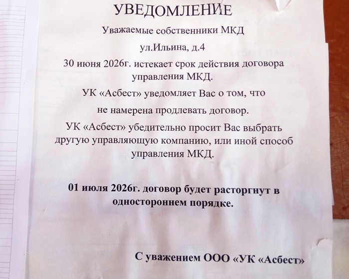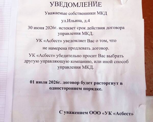 | В прежней заявили, что больше обслуживать дома не будут. Жители двухэтажек на улицах Советская, Ильина, Пионерской получили уведомления о том, что управляющая компания - УК "Асбест" по истечению договора (он истекает 30 июня) продлять его не намерена. Жителям предложено выбрать другую УК. - Предупредили заранее, - рассказала жительница дома на улице Советской Татьяна. - Только какую мы найдем? В УК пояснили, что работы в двухэтажках много, выгоды - нет совсем. Ну и кому мы будем нужны? В нашем доме долгов по квартплате нет, а в других, конечно, имеются... Выход, в принципе, имеется - муниципальная управляющая компания дома, оставшиеся без управления, взять обязана. Но ведь, по слухам, сама на ладан дышит. И образовалась недавно - после того, как прежняя, муниципальная, обанкротилась. Наверное, не на пустом месте обанкротилась - ясно, почему. И еще один вариант - взяться за управление самим. Но это, чтобы получилось, нужно большое желание. И.Атанасова, Асбест-гид Фото автора | |